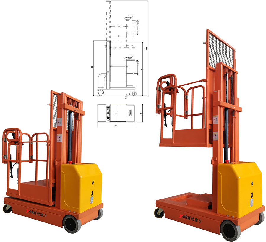 自行走設(shè)計,底盤上裝有驅(qū)動裝置,操作人員站在工作平臺上自行控制行走、轉(zhuǎn)向。平臺升高到高處行走時,地面的傾斜度不超過1度。不得在斜坡上進行行走。