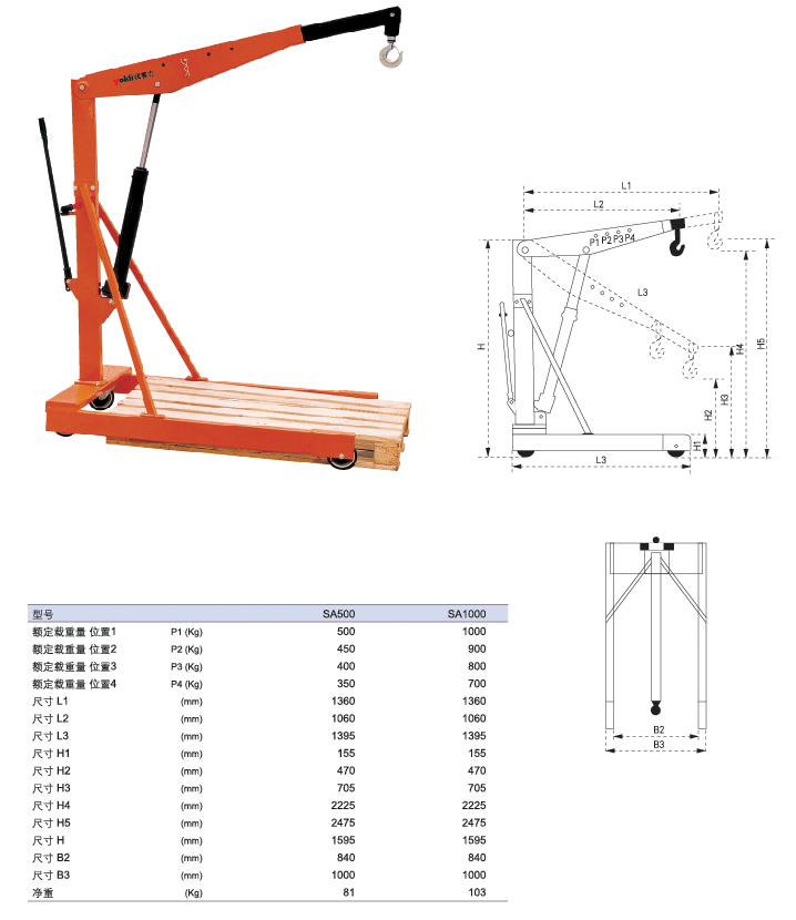 ● 根據(jù)需要,吊臂長度可在四個(gè)工位中調(diào)節(jié)。