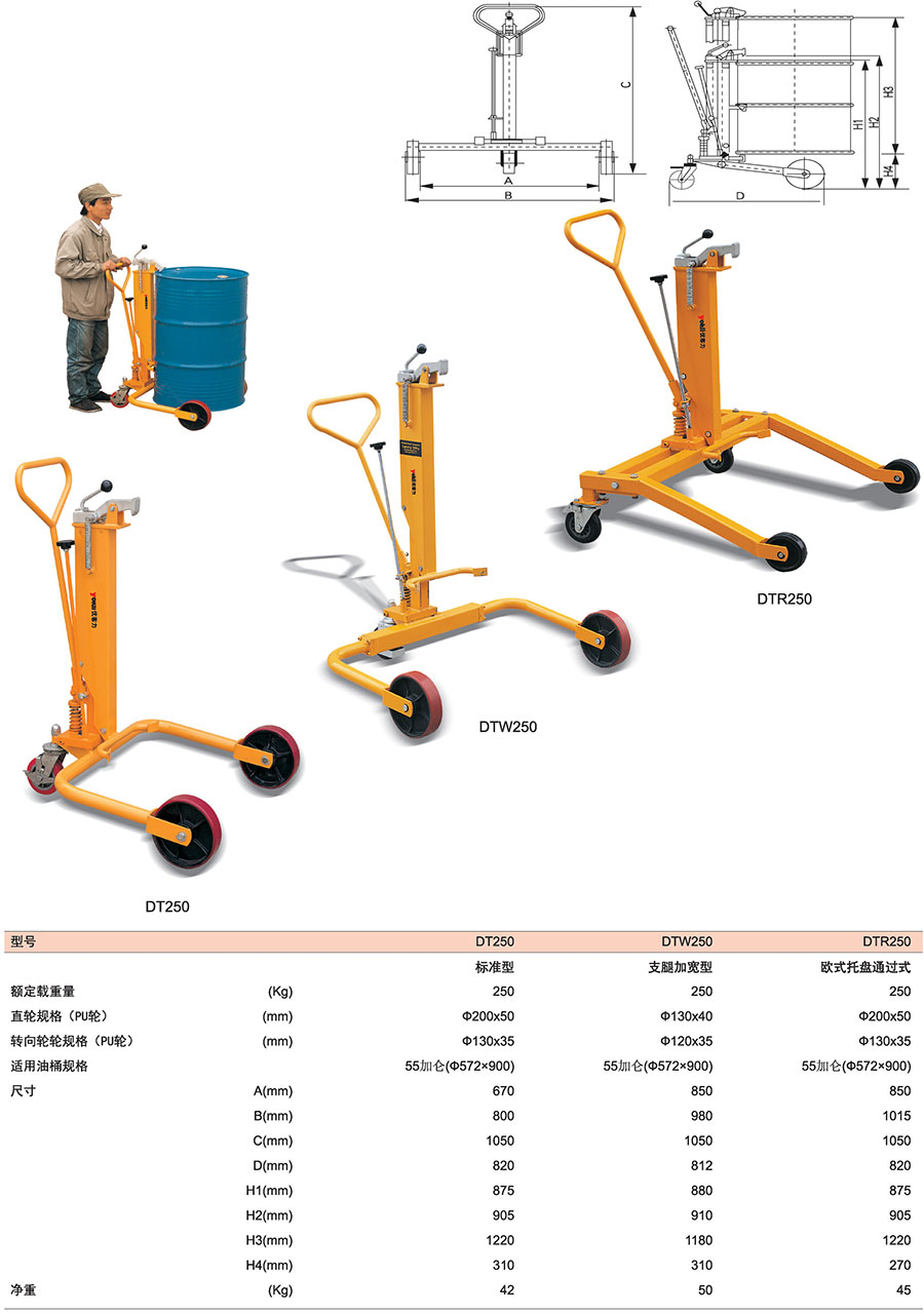 DT標(biāo)準(zhǔn)型液壓油桶搬運(yùn)車