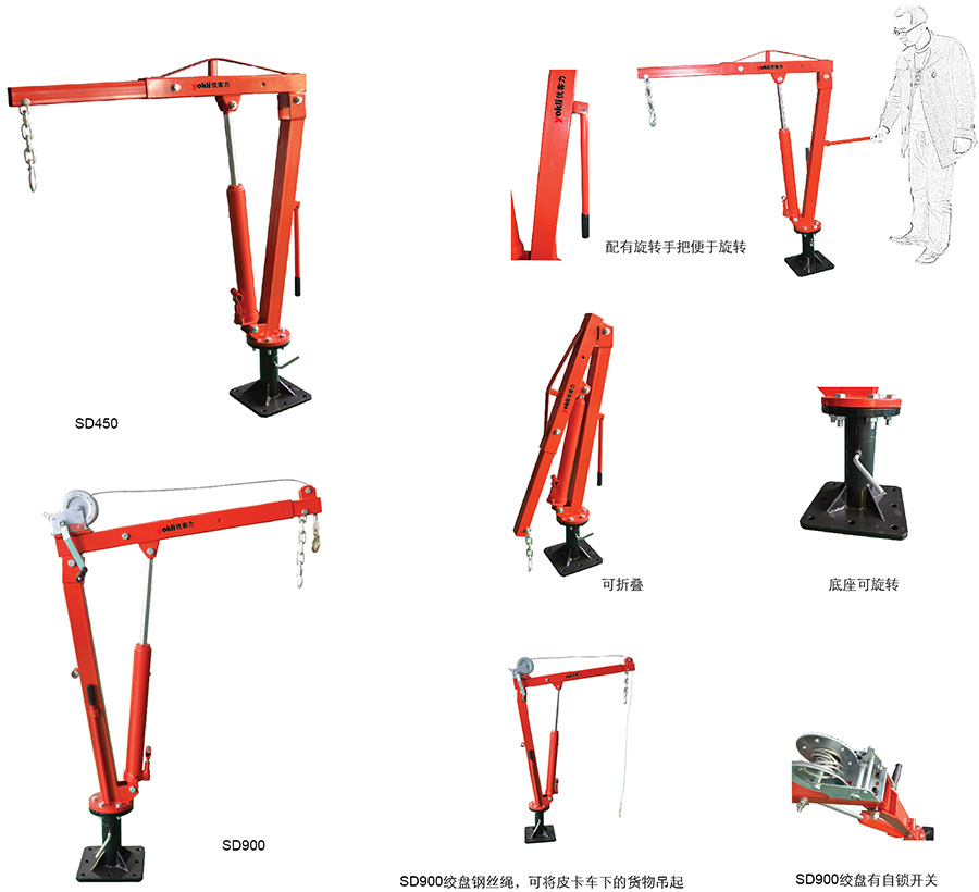 ● SD450款兩個工位可調(diào),特別注意,外工位載重180KG。嚴禁超載(SD450款,內(nèi)孔位吊臂較短,通常使用外孔位作業(yè))。